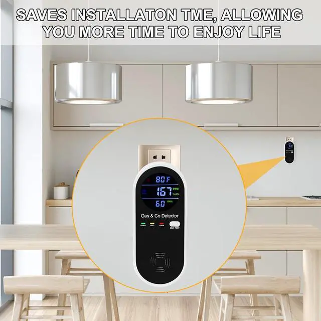 4-in-1 Upgraded Gas & Carbon Monoxide DetectorDesigned with a large digital display, it detects and displays temperature, humidity,natural gas and carbon monoxide levels in real time for your peace of mind