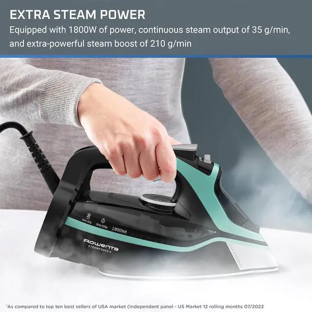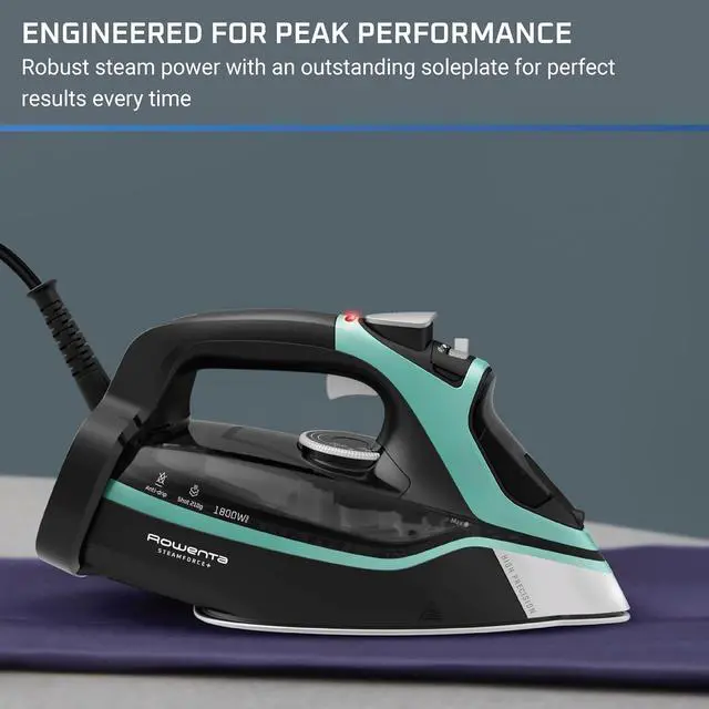 QUALITY AND DURABILITY: This clothes iron has exceptional features including a laser-finished, highly scratch-resistant soleplate and a built-in anti-calc system for long-lasting performance.