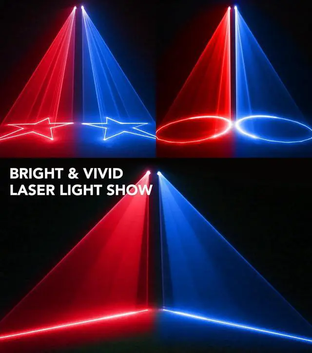 Professional 512DMX & Remote ControlExperience unparalleled creative control with stage lights, featuring an advanced 18CH/34-channel DMX console for precision laser lighting design. You can edit and create even more lighting effects to find endless surprises. For those who favor ease without sacrificing spectacle, the intuitive remote control enables you to effortlessly conjure a mesmerizing lazer light show with a simple click