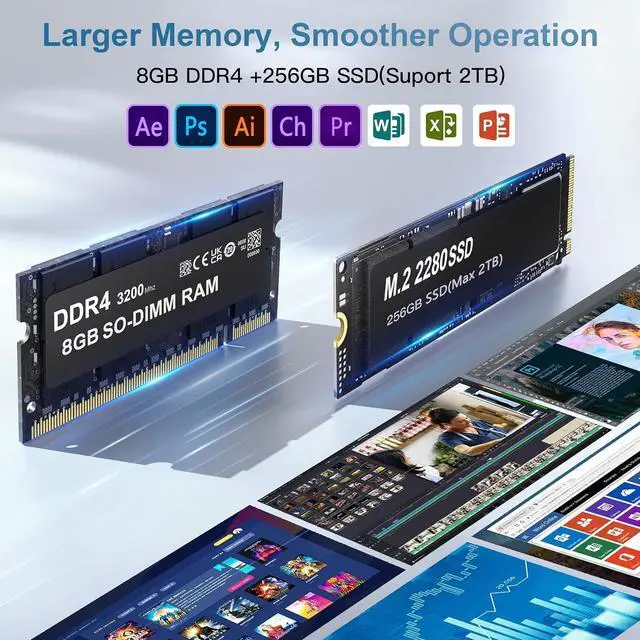 High-Speed NetworkThe mini desktop pc supports Wi-Fi 6 ( 802.11 ax) for ultra-fast wireless connections, enabling smooth streaming and speedy downloads. Compared with Wi-Fi 5, Wi-Fi 6 is nearly 3 times faster, you can have a dedicated and undisturbed channel when playing games. Built-in Bluetooth 5.2 allows for effortless pairing with various peripherals, such as wireless keyboards, mice, earphones, monitoring camera, printer, monitor, TV, projector etc