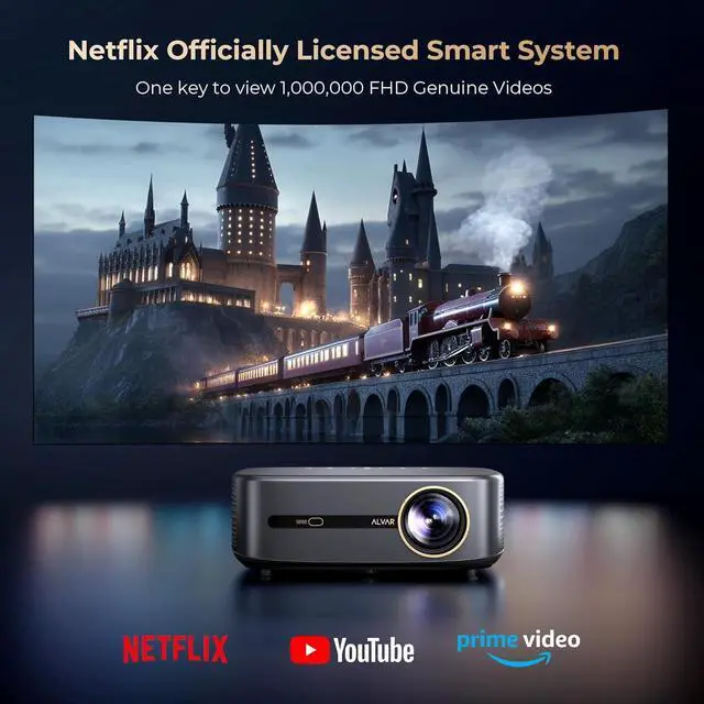 4K 60Hz Supported & First HDR10 & Eye-protection: The native 1080P support 4K resolution ensures that every detail pops with stunning clarity. Also the 100% NTSC and HDR 10 delivers sharp and lifelike images with vibrant colors and deep contrast, allowing you to immerse yourself fully in whatever you're watching. Also this is a certified eye protection projector. You wont fell eye strain even after a long time watching