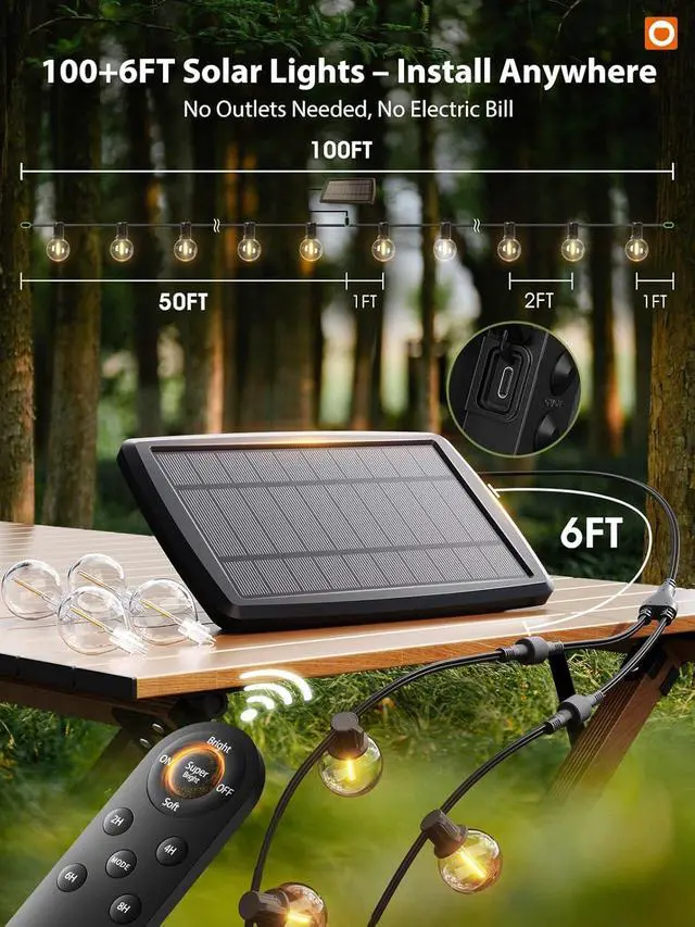 Commercial-Grade Solar Powered Outdoor Lights: IP65 waterproof certification, these solar string lights for outside withstand extreme weather conditions, including high temperatures, heavy rains, and strong winds. The high-quality plastic shell ensures the bulbs are shatterproof and durable for long-lasting use
