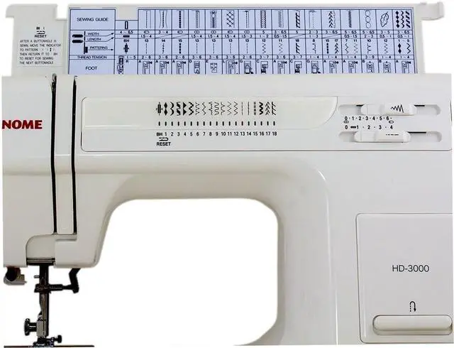 The Janome HD3000 comes with the features you need for great sewing. It's solidly constructed with one-piece aluminum casting. Choose from 18 stitches, including an automatic one-step buttonhole with balance adjuster for precise results on specialty fabrics. The Janome HD 3000 has the Janome top loading jam proof bobbin system, 7-piece feed dog which ensures precision fabric control, drop feed, extra high lift presser foot and so much more. It also comes with a one-hand thread cutter and easy to use snap on feet.