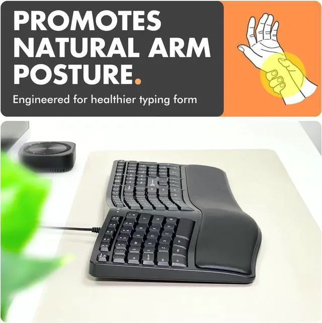 For PC and Chrome: Simply plug and play and use it right away with your desktop or laptop. No need to install any drive. This wired ergo keyboard is ready for any long-hour task.
