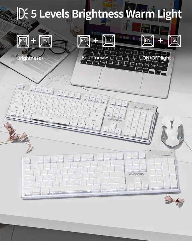 Wireless Silent Mouse & Universal Compatibility: V3 white keyboard comes with wireless silent mouse that supports type-c charging, so you can play while charging. The mouse has 3 levels sensitivity. This wireless mouse and keyboard combo works with your PC, desktop, laptop or notebook. Compatible with Windows, Linux, Chrome and Mac.