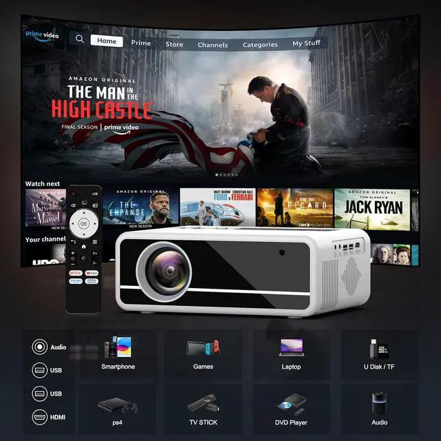 ***Multiple Connection for All Home Entertainment***This movie projector with WIFI and bluetooth is also equipped with HDMI/USB/TF port which can properly compatible with TV stick, Smartphone, Tablet, Laptop, Video Games, USB stick, micro USB card, etc. to expand your home entertainment for more fun and colorful. This home proyector provides flexibility and fidelity images for our customers indoor and outdoor movies.