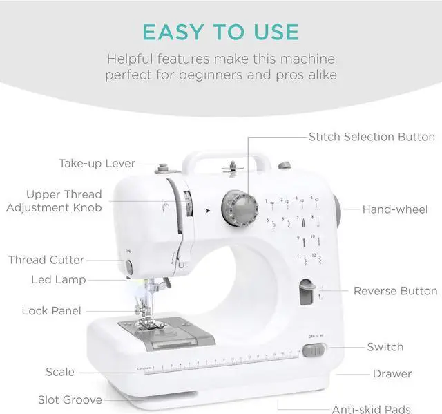 VERSATILE USE: Use your sewing machine to patch up torn clothes, or to create DIY crafts, masks, or clothes from scratch. Includes a storage compartment for easy access to threads and other supplies;