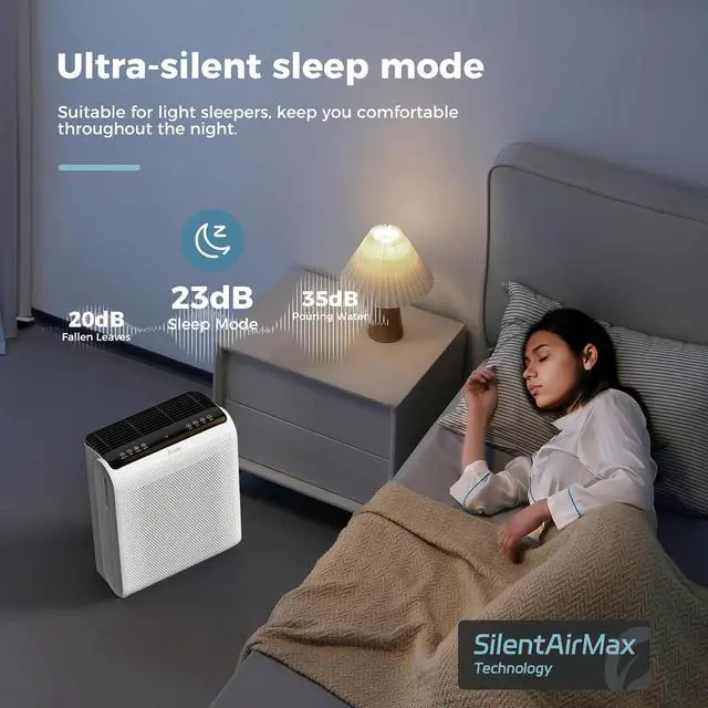 Quiet and Calming: With advanced technology, this air purifier keeps noise levels close to a whisper at 23 dB. Choose the sleep mode at night for a peaceful rest. AROEVE MK07 eliminates the disturbance of typical air purifier sounds. Ideal for bedrooms, offices, or living rooms