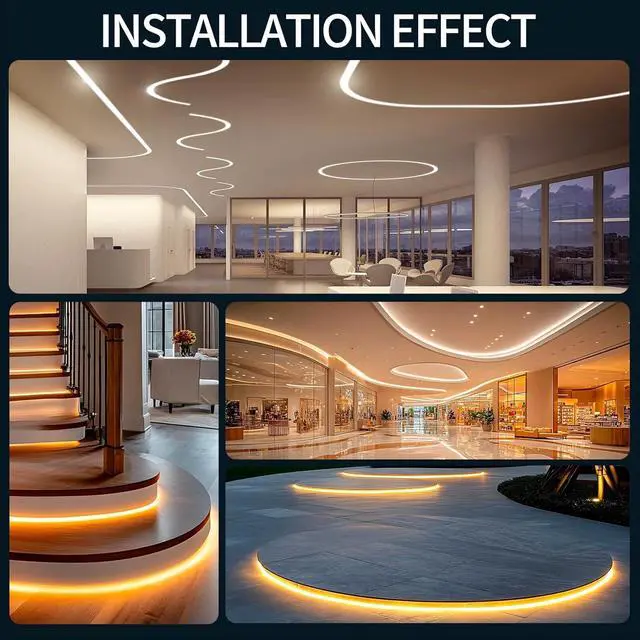 DIY Lighting: The curved LED channel offers excellent flexibility, making it ideal for DIY custom designs. It allows light strips to be installed on curved or irregular surfaces and is widely used in spaces like ceilings, stairs, cabinets, and displays, meeting creative lighting needs in both residential and commercial settings