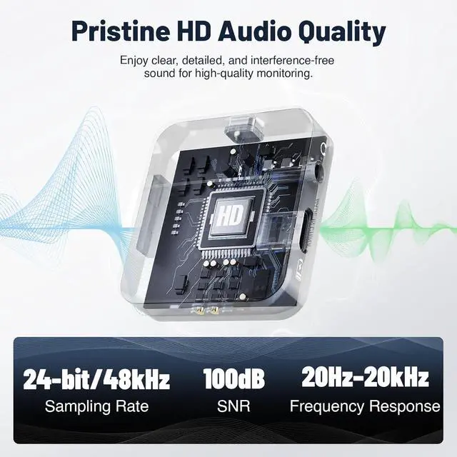 Crystal Clear Audio: Operating on the 2.4GH z band, this wireless in-ear monitor system provides reliable audio transmission. It delivers 24bit/48kHz HD audio for exceptional clarity, a wide 20Hz20kHz frequency response that captures every detail, and a 100dB signal-to-noise ratio for clean, distortion-free soundensuring an accurate and immersive listening experience