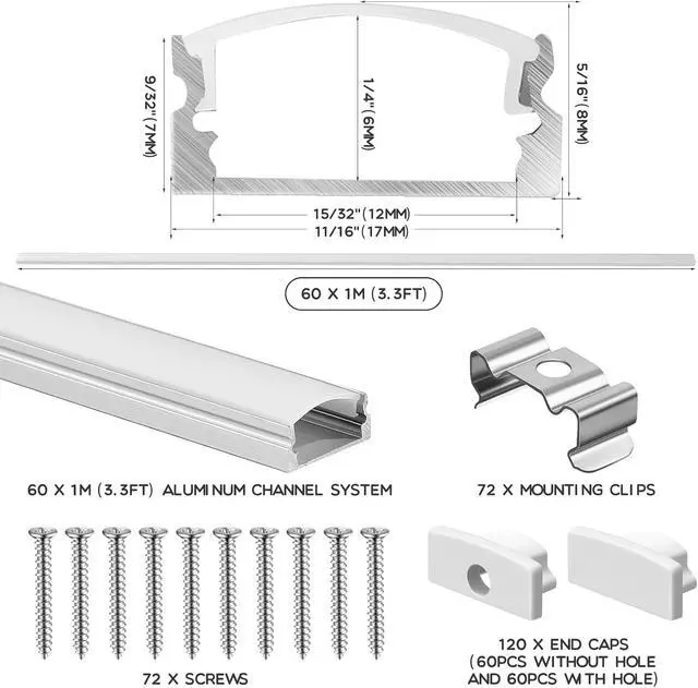 60 x Aluminum channel system (1 meter/ 3.3 feet)