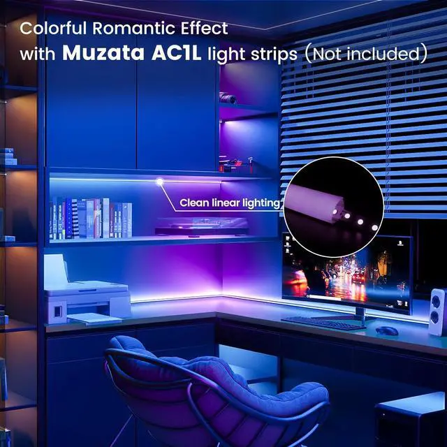 Create ambient lighting with Muzata: Muzata provides various lighting fixtures for you to achieve personalized ambientone-stop home lighting. We suggest using V1SW for cabinet and bookshelf lighting, U108 for truly spotless lighting effect, U131 for living room ceiling lighting help you create a welcoming and lively atmosphere