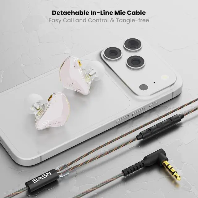 Versatile Compatibility: BASN iems for musicians are stylish and durable, the replaceable cable used with standard 3.5 mm jack. The package also includes a 6.35 mm (1/4 inch) to 3.5 mm (1/8 inch) adapter for aux cable, guitar amplifier, or audio devices.