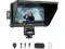 package: The front features a high resolution, daylight viewable LCD touchscreen and a sunshade, there are video connections on the bottom, SD card slot and shortcut key on the top, space for NP-F batteries on the back, control dial on the left, features standard 1/4" mount points on the bottom and right for attaching it to cameras and rigs.