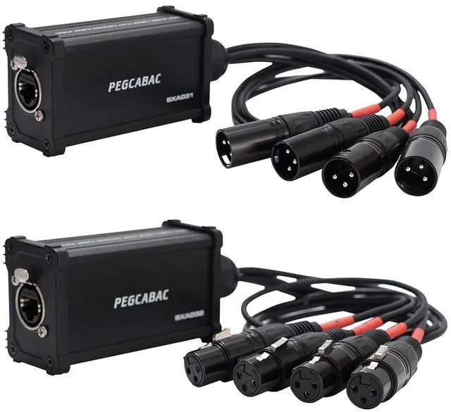 Pegcabac 4 Channel Snake 3 Pin XLR/DMX/AES-EBU to Ethercon RJ45 Cat5/Cat6 Ethernet Extender for Stage Sound Lighting and Recording Studio with 2 Ft Breakout Cable(Male&Female)