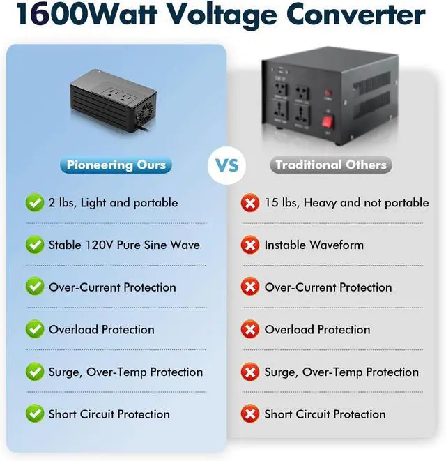 The groundbreaking invention of the first patented 1600W pure sine wave travel converter represents a significant leap forward in power conversion technology. Unlike chopped wave 2000W converters designed for limited-use, this innovation accommodates all 110-120V electronics and appliances.