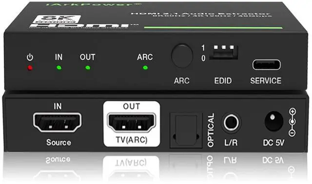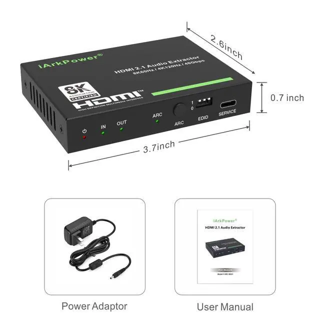 High QualityiArkPower HDMI audio extractor splitter supports up to 10ft certified 8K HDMI cable at both input and output ends; made by solid metal enclosure for quick heat dissipation and excellent longevity