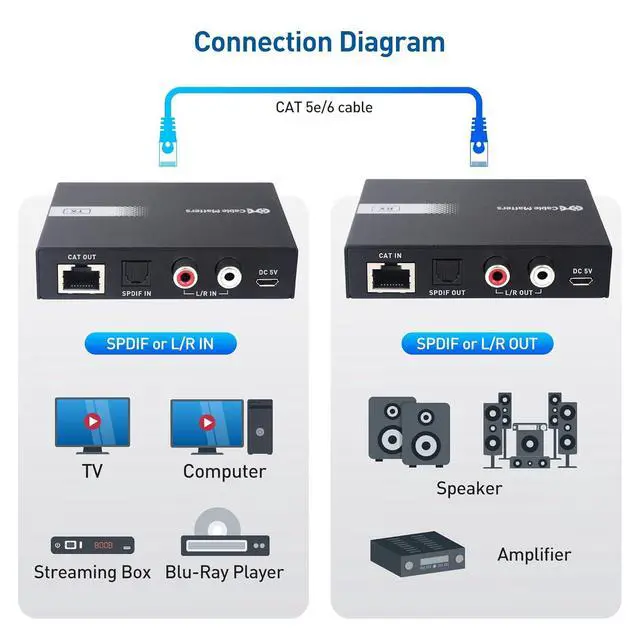 Plug-And-Play Connectivity: Simply connect the analog audio extender transmitter to an audio source, the Toslink extender receiver to a receiver device or speaker, and enjoy flawless audio with no additional setup required; The audio extender ethernet transmitter and receiver are housed in a solid metal enclosure for durability and style
