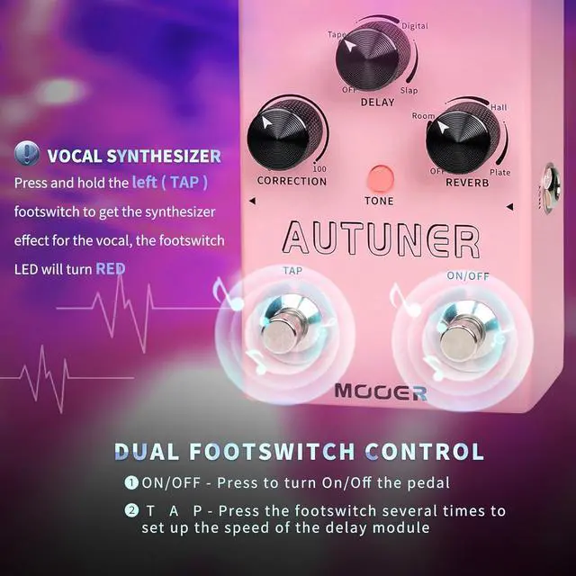 Precise pitch correction effect for a clean , even tone. High-quality delay and reverb specifically designed for vocal performance.