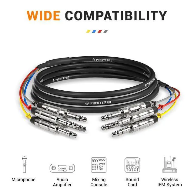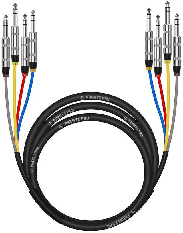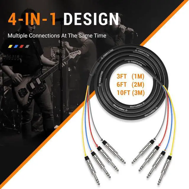 CONVENIENT CABLE MANAGEMENT: This 4-in-1 snake cable features four 10 ft color-coded TRS cables, each numbered 1-4 for easy identification. Designed to work seamlessly with instruments like guitars, basses, and other setups that require balanced TRS connections, this guitar cord is also compatible with DJ equipment, audio mixers, and more