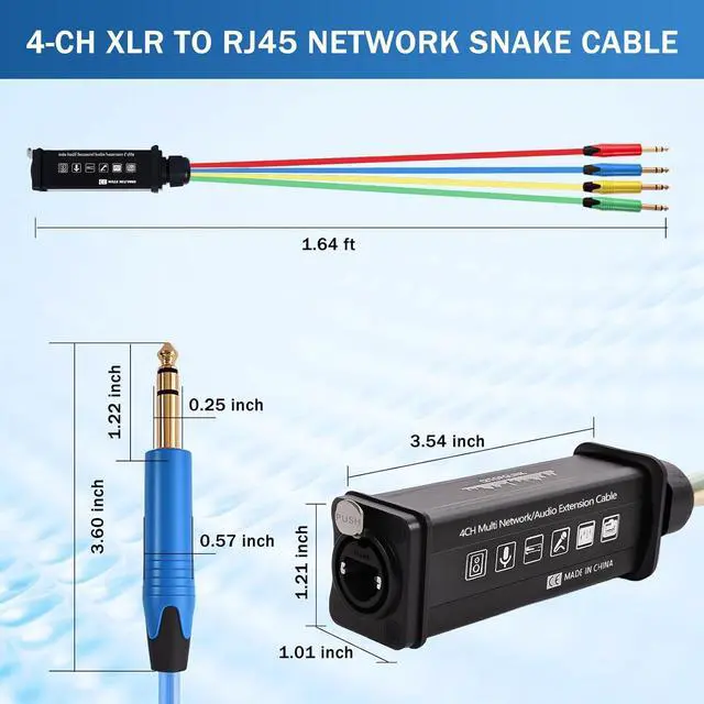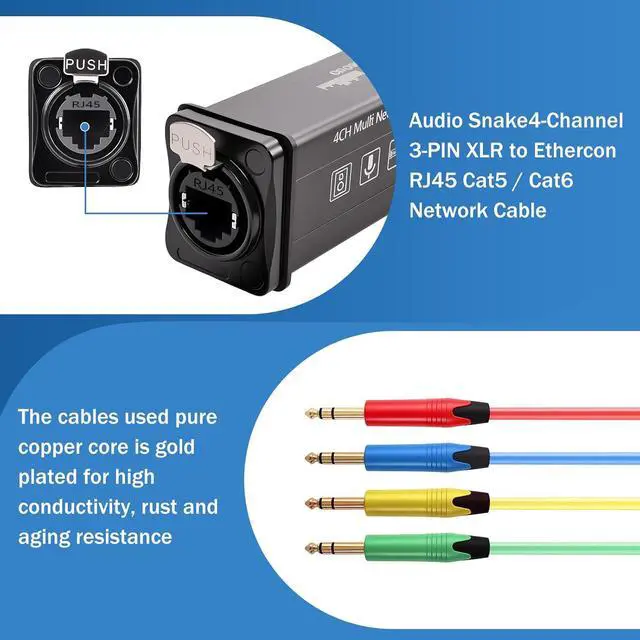 Plug and play, no soldering required, easy to carry and install. It can be quickly set up to perfectly send audio to distant mixer consoles, while reducing costs and eliminating multi-cable clutter.