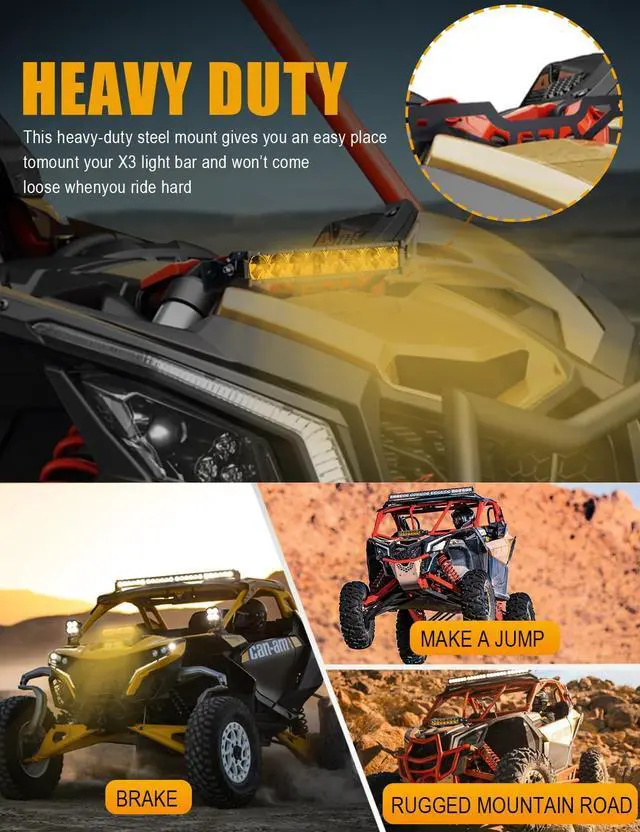 Stable And Durable: This heavy-duty steel mount gives you an easy place to mount your 13.4 X3 light bar and wont come loose when you ride hard at high speeds