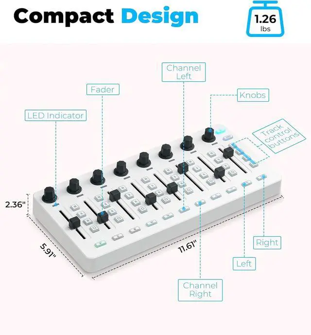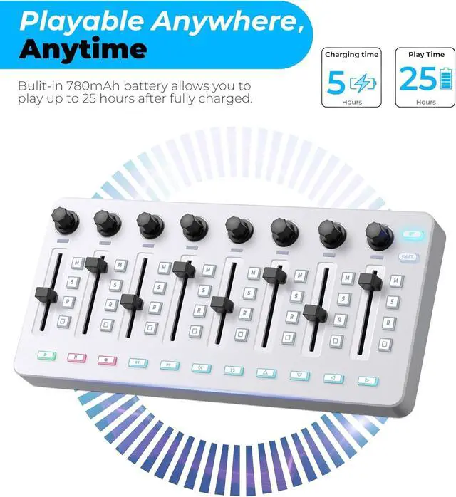 On-the-Go Grooves- Whether you're in the studio or on stage, the midi fader controller's portable design ensures that your music goes wherever you go. Don't be tied down by bulky equipment - with this midi controller knobs midi controller keyboard, you can unleash your creativity anytime, anywhere.