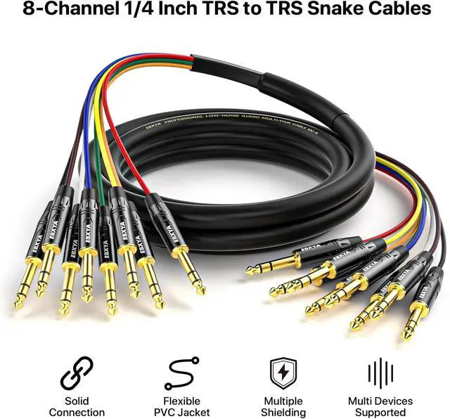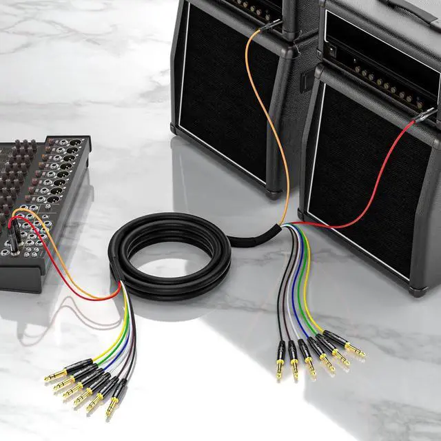 Universal Compatibility: 8-channel 1/4 inch TRS Snake Connecting multiple audio sources to a mixer or audio interface. Compatible with mixers, audio interfaces, synthesizers, monitors, and surround systems, this cable is plug-and-play ready for music production, live sound, and home theater setups