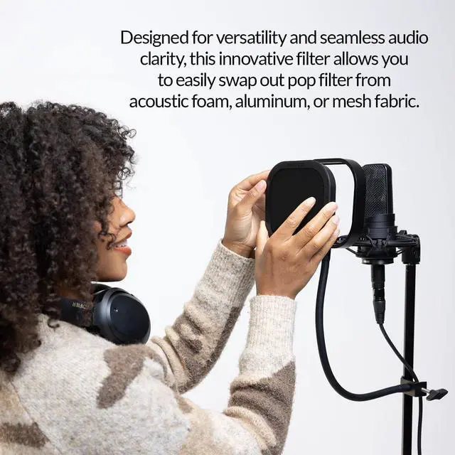 • INTERCHANGEABLE POP FILTER: Switch easily between dual-layer metal, mesh, and acoustic foam filters to match your recording style. Each filter type offers unique tone shaping and plosive protection for every vocal setup.