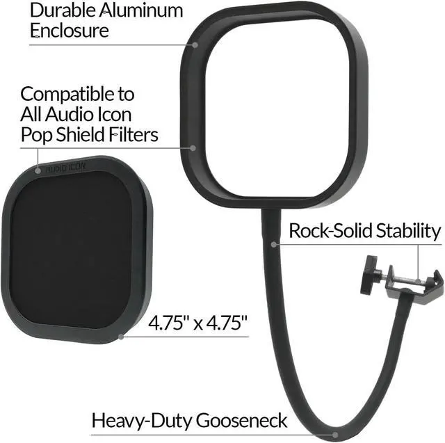FLEXIBLE GOOSENECK CONTROL: The silicone-coated gooseneck allows precise positioning and stability without slipping. Easily adjust distance and angle for perfect placement, giving you total control over your recording tone and microphone alignment. The 14.75" flexible gooseneck provides extended reach, while the 5" x 5" pop filter enclosure fits most standard microphones for professional versatility. The overall length of 20.75" ensures ideal positioning for studio, podcast, or home recording setups.