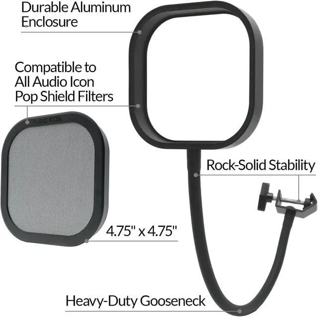 FLEXIBLE GOOSENECK CONTROL: The silicone-coated gooseneck allows precise positioning and stability without slipping. Easily adjust distance and angle for perfect placement, giving you total control over your recording tone and microphone alignment. The 14.75" flexible gooseneck provides extended reach, while the 5" x 5" pop filter enclosure fits most standard microphones for professional versatility. The overall length of 20.75" ensures ideal positioning for studio, podcast, or home recording setups.