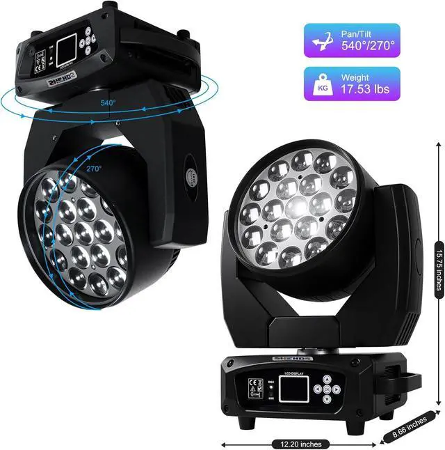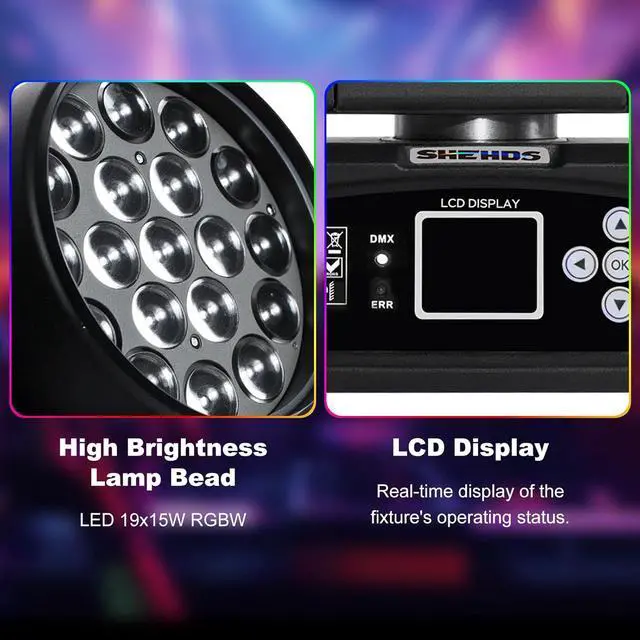 SHEHDS 19x15W Moving Head Light LED is UL-certified for safety and quality assurance, ideal for commercial venues, live performances, and prolonged heavy-duty operation.