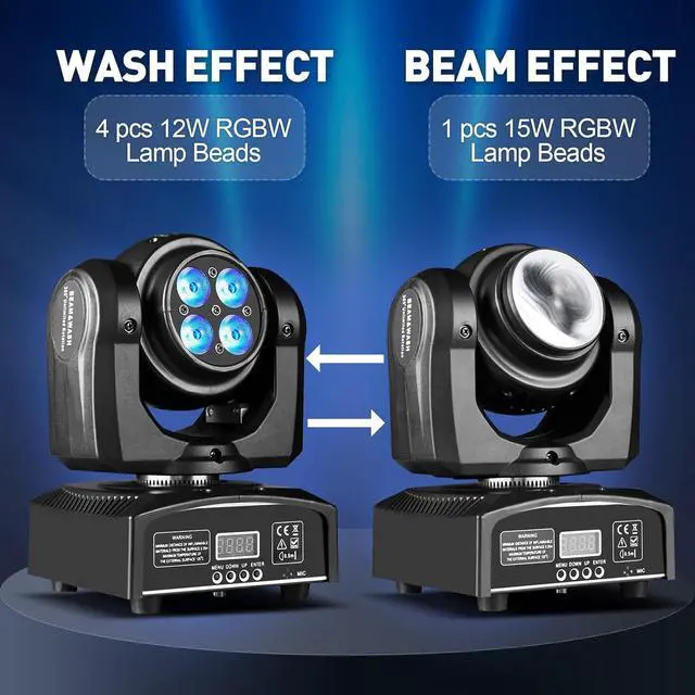 APPLICATIONThe double sides wash & beam mini LED moving head light is a great choice for live performances, clubs, bars, theaters, and other entertainment venues that require dynamic, professional lighting.