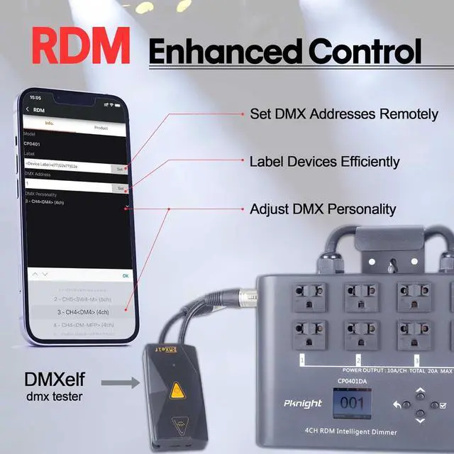 DMX Personalities: 4CH-SW4, 5CH-SW4-M, 4CH-DM4, 4CH-DM-MFP, 8CH-DM4-MFP. Use them for remote control of device switches or light brightness.