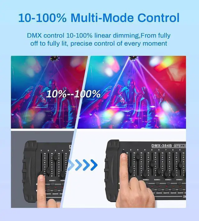 The LCD display and control buttons make operation straightforward and easy. You can quickly view and adjust settings with clear feedback on the screen. The buttons offer quick access to key features, simplifying the adjustment of lighting effects during events. Overall, it provides a convenient and user-friendly experience.
