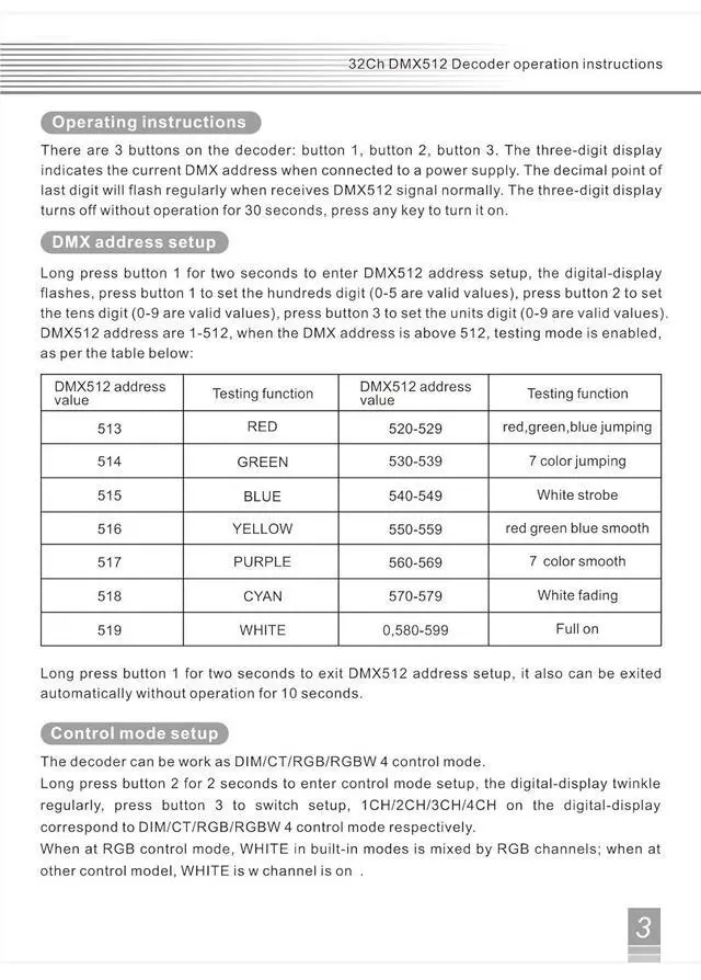 8. The decoder can operate in DIM / CT / RGB / RGBW control modes.