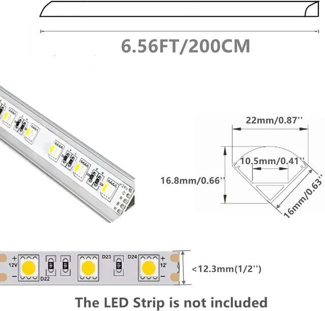 Interior Angle Profile Is Designed To Hold Strip Less Than 0.5 ( 12.3MM ) Wide, It Fit For a Majority Of 5050 5630 2835 Single Color, Tunable White, RGB and RGBW LED Strip In Ambient, Accent, Bias, and Task lighting. (Not for Hue 2ND)