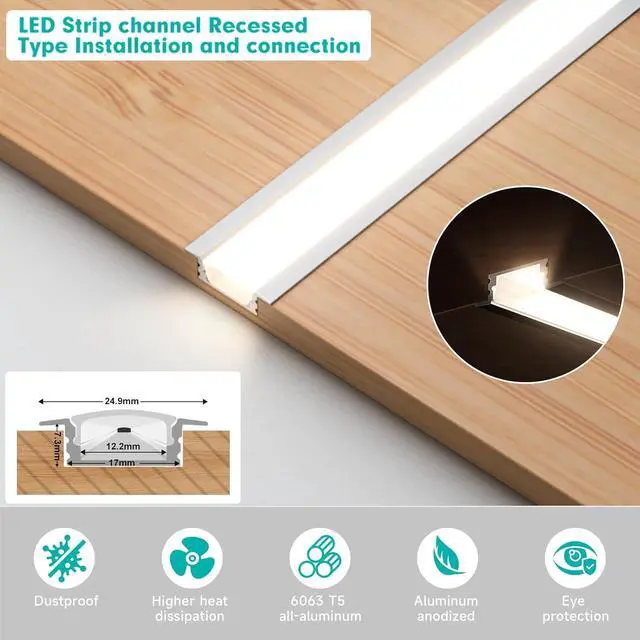 Durable and ProtectiveThe led aluminum channel not only enhances the light output but also protects your led light channel from dust, moisture, and physical damage. The aluminum construction provides excellent heat dissipation, extending the lifespan of your LED tape.