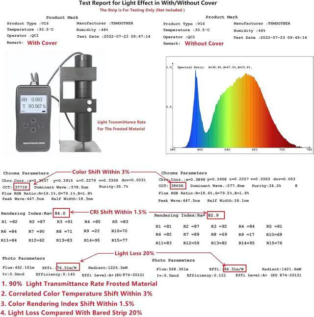 4. Light Loss Compared With Bared Strip Around 20%