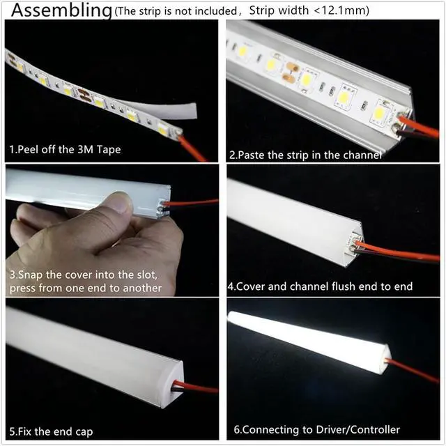LED Strip Channel V Shape Installation and ConnectionThe Channel Fit For LED Strip Light Less Than 1/2 Inch Wide Which Include Single color, Tunable white, RGB and RGBW Programmable LED strip lightsIt can be Installed By 3