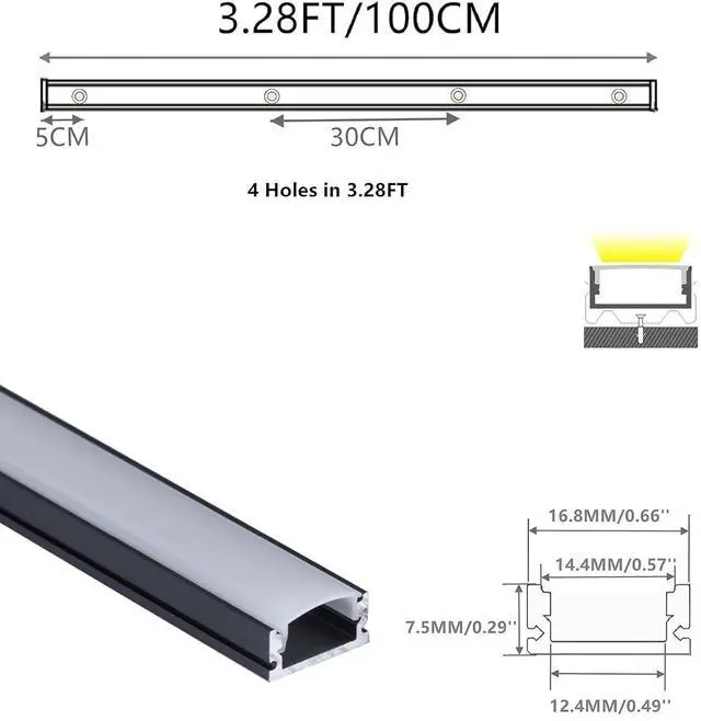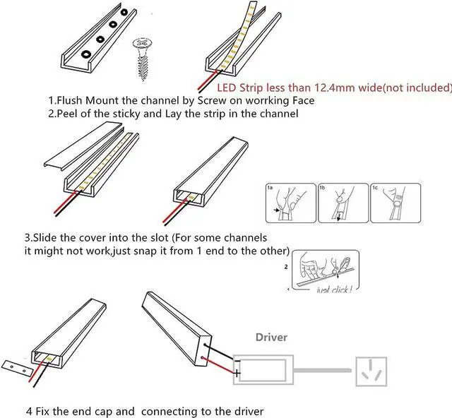 The Aluminum Track is Designed to Hold the Strip Less Than 12.4 mm( 0.49 ) Wide, It Fit For a Majority of 5050 5630 2835 Steady Color, RGB, RGBW and Programmable Tape (Not For Hue Plus)