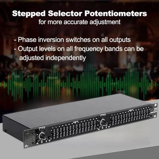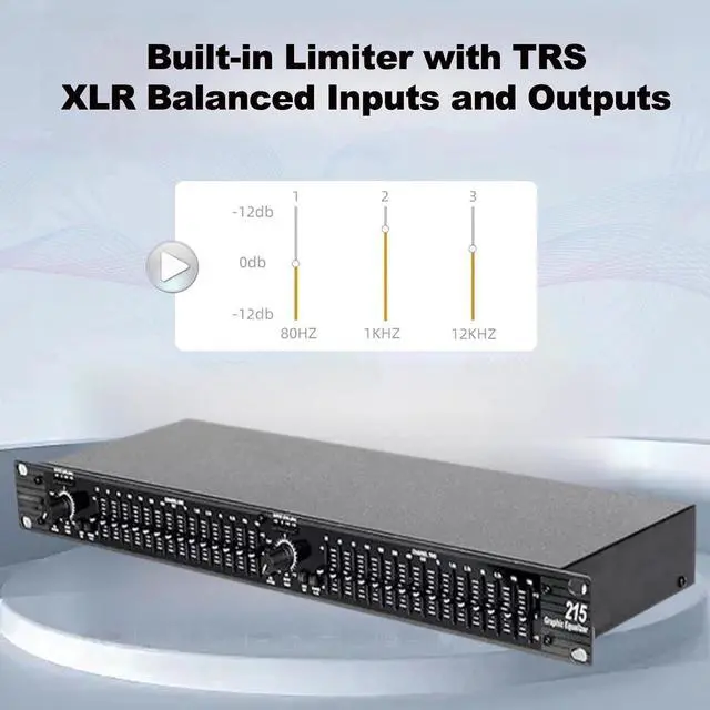Dual-Channel 15-Band Stereo Graphic Equalizer: Each band of Equalizer for Home Audio is adjustable from ±12dB, with gain and decay values ranging from ±6dB to ±12dB, ideal for live performance, recording studios, etc