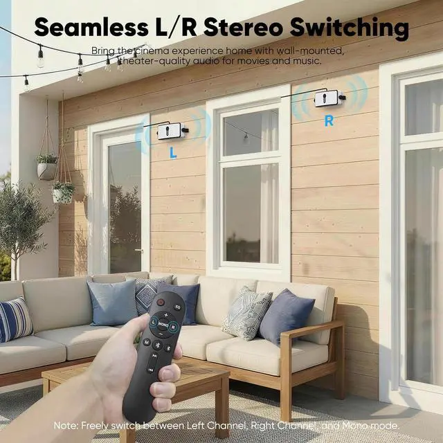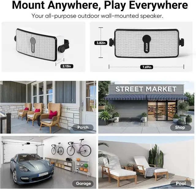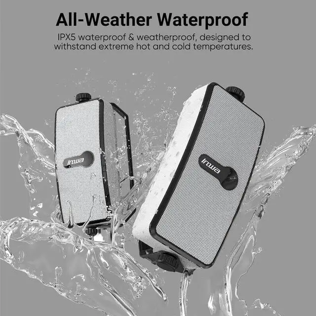 Weather-Resistant & Easy to ControlBuilt to last outdoors with a IPX5 waterproof rating, it withstands rain, splashes, and dust. The included remote control lets you adjust volume, switch tracks, and manage settings from across the roomno phone needed.