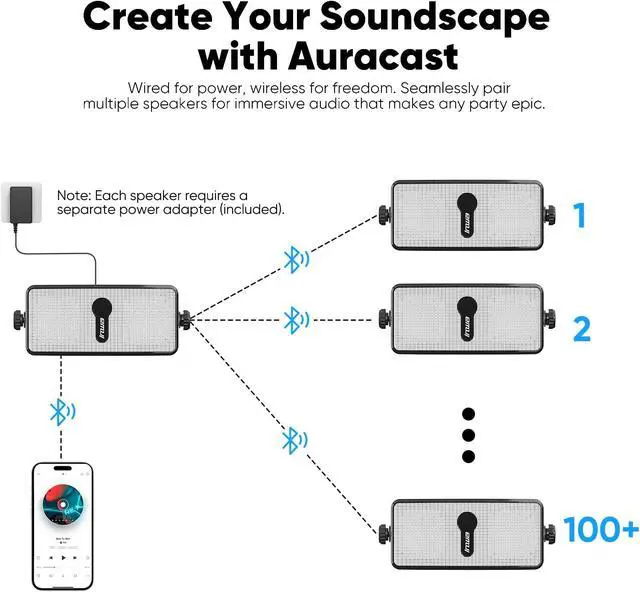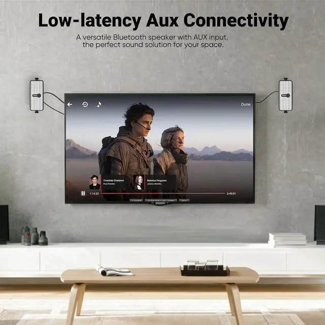 Dual Connectivity: Bluetooth 6.0 & AUX InputStream wirelessly via Bluetooth 6.0 for sg, uninterrupted audio, or use the 3.5 mm AUX input for zero-latency playback from TVs, projectors, or non-Bluetooth devices.
