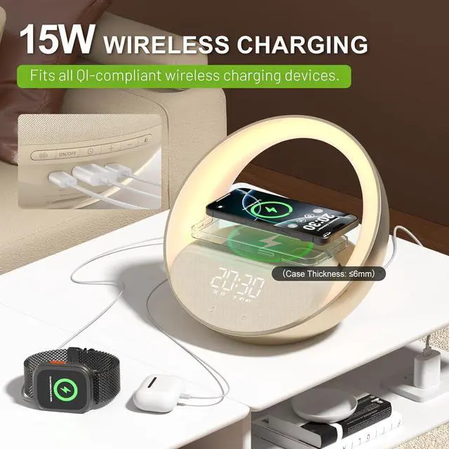 15W Fast Wireless ChargingNow it's just need one wireless charger for iPhone 16/15/14/13/12 Mini/Plus/Pro/Pro Max Series. When useing the wireless charging function, please plug in the power supply. Wireless charging frees you from cumbersome data cables and sockets, allowing you to wake up to a fully charged phone.