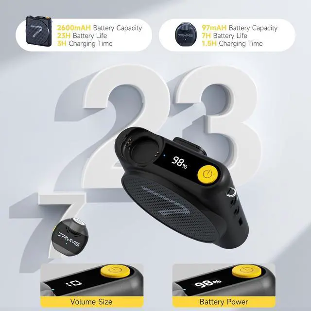 Long Battery Life & LED Digital Display Built-in 2600mAh rechargeable lithium battery offers up to 23 hours of continuous use or 28 days of standby time. The LED digital display clearly shows battery, volume, and connection status for easy, real-time monitoringideal for long teaching sessions or outdoor use.