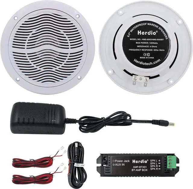 WHAT'S IN THE BOX & QUALITY SERVICE: A pair HMS-6005 speakers, amplifier box x 1Pcs, 3A12V adapter x 1Pcs, DC12V wires x 1Pcs, speakers wires x 2Pcs, screws x 8Pcs, Product Manual x1Pcs. Your satisfaction is the foundation of our forward momentum.