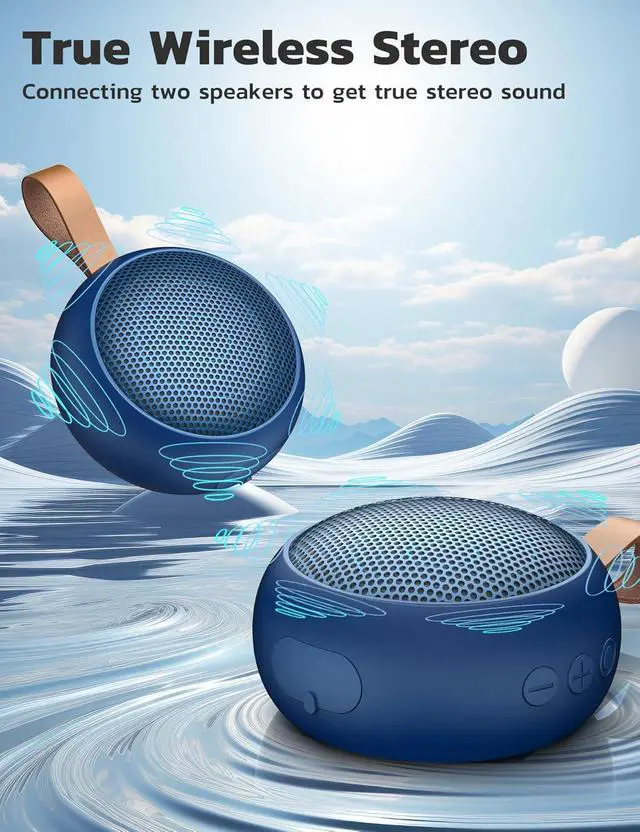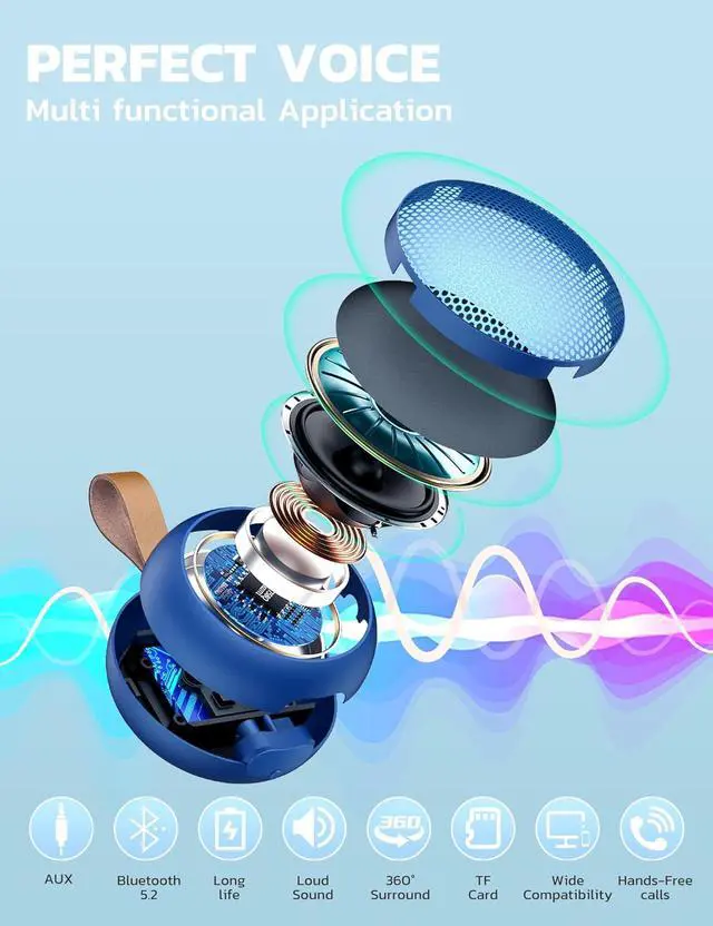 IPX7 Waterproof Shower Portable Bluetooth Speaker, Small Speaker Wireless Bluetooth with Loud Sound, Support TF Care/ Built-in Mic- for Carabiner, Beach, Camping, Hiking, Pool, Great Gift (Blue)
