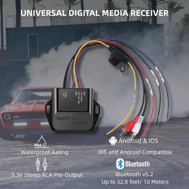 Just to confirm the CAR Bluetooth receiver requires both the **+12V (or +24V)** power ( YELLOW ) and the **ACC (accessory/ignition) line ( RED ) ** to be properly connected in order to power on. Without the ACC line receiving voltage (typically when the ignition is on), the unit will remain off by design.