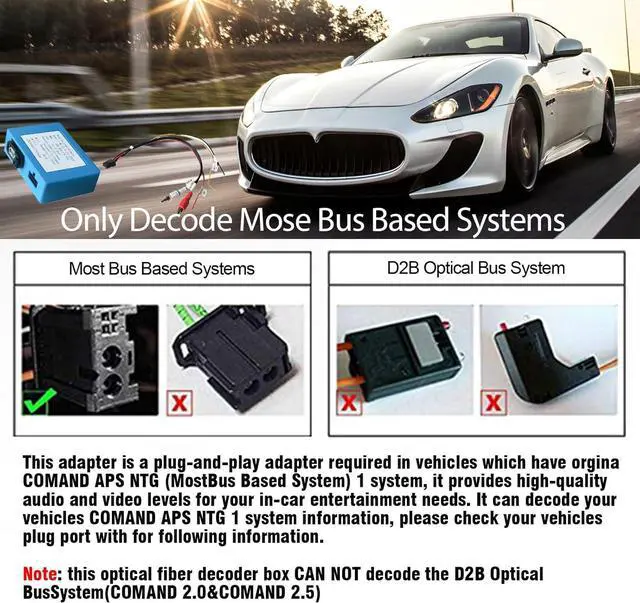 Compatible Car Model: The fiber optic decoder fits for Mercedes-Benz R(2005-2018)/GL(2005-2013)/ML(2005-2011)/S W221(2005-2012)/CLS(2009-2012)/SLK(2009-2012), for Audi 2G HOST / 3G HOST, for BMW E9X E7X EOX, for Porsche 911(2004-2015)/boxster(2004-2015)/cayman(2004-2016), for VW Touareg 2011-2017